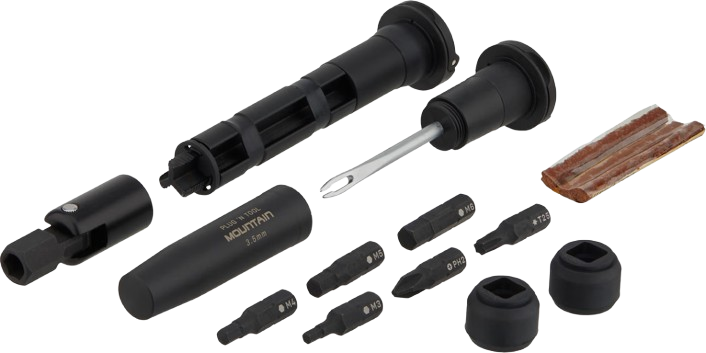 يسهل الوصول إلى الطقم لإصلاح الإطارات بسرعة، ويأتي مع خمسة سدادات أنابيب عالية الجودة، يمكن تخزينها داخل هيكله. كما يعمل كسدادة طرفية، ويأتي مع ثلاثة حلقات مطاطية بأحجام مختلفة لضمان تثبيت محكم داخل معظم فتحات المقود.